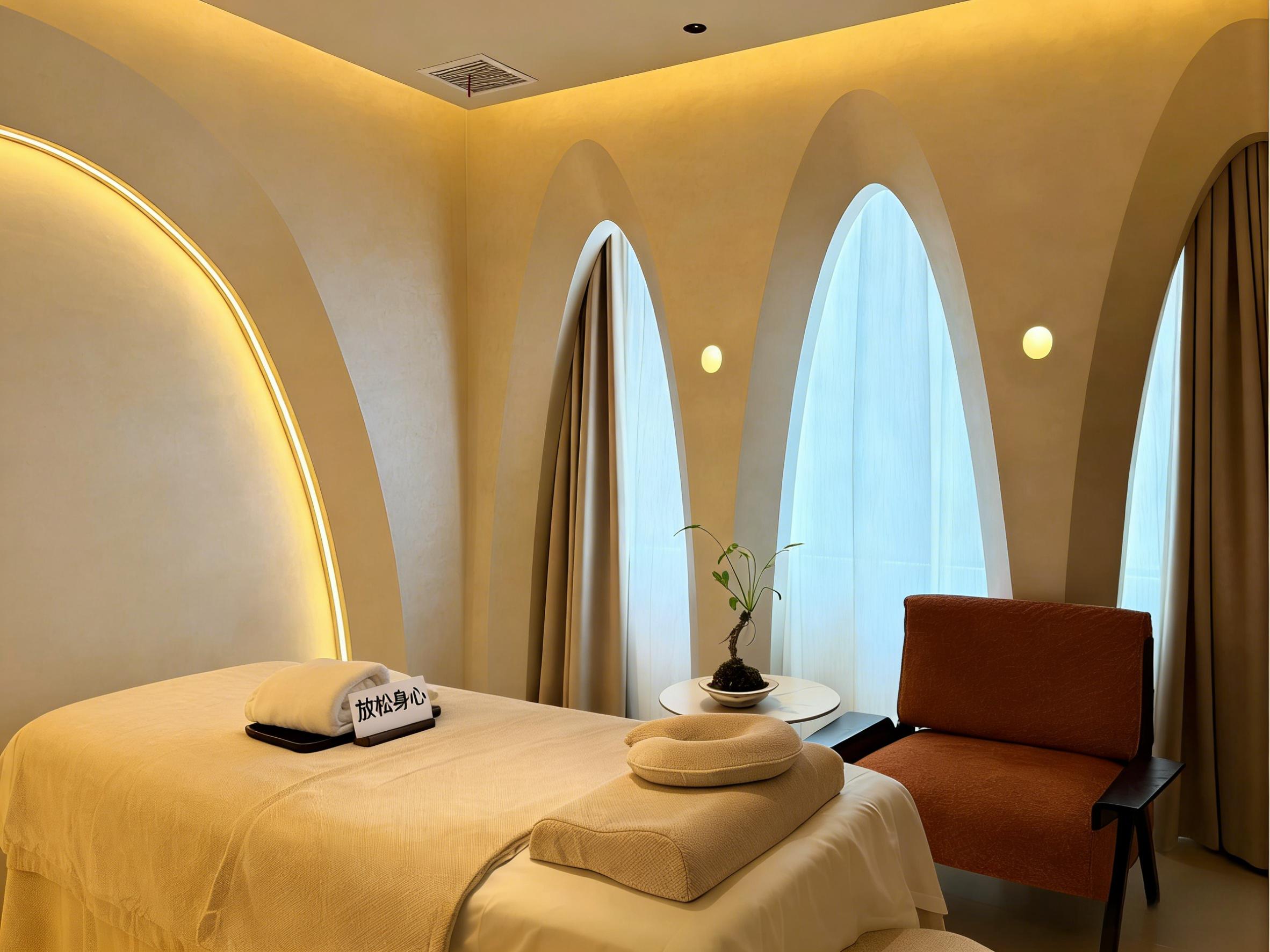 空间规划格外贴合经营动线。合理划分前台接待、等候休闲、产品展示、普通护理间、VIP 私享房、洗护储物区,客户动线顺畅不绕路,员工操作动线高效不拥挤。护理隔间注重隔音降噪、独立遮光,搭配柔和无主灯氛围光,营造沉浸式放松体验,兼顾隐私与舒适度。
