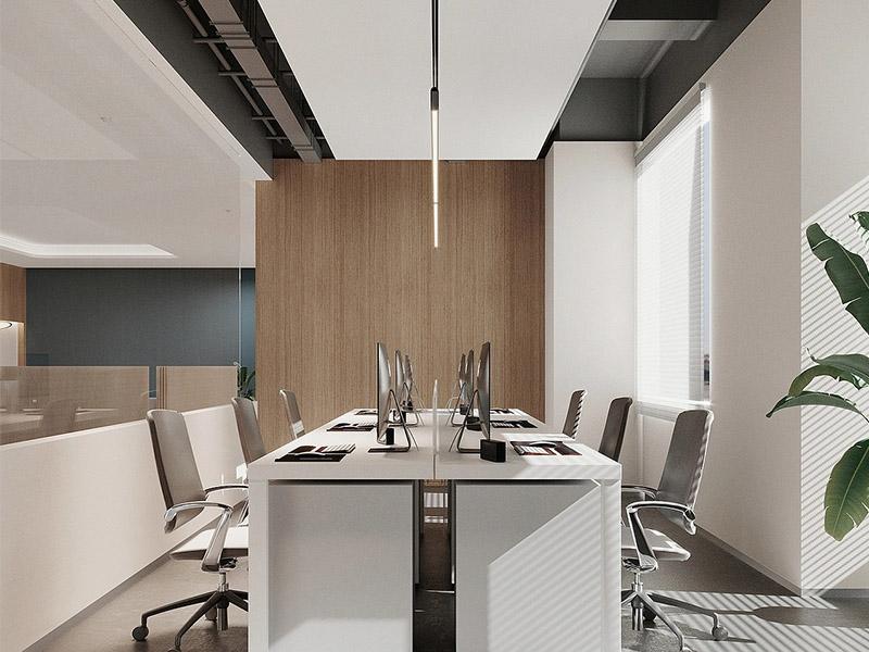 空间风格以现代简约为主调,米白、浅木与深灰为基底,搭配线性灯光与通透玻璃隔断,营造明亮通透、简约高级的氛围。开放办公区采用模块化布局,优化动线提升协作效率;高管室以温润木饰面与精致软装,凸显沉稳专业;休闲区融入弧形元素与柔和色彩,为员工提供放松角落。选材上坚持环保标准,严控甲醛等有害物质,从源头保障办公健康。