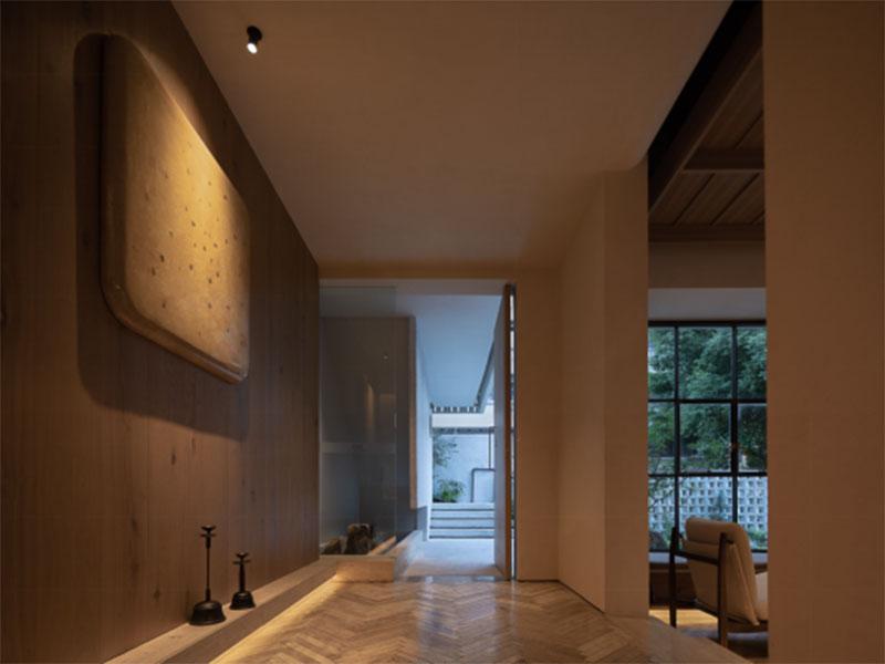 温馨感的核心,从来不是“越亮越好”,而是用有层次的光影,打造松弛的情绪场域。壹西格玛在成都民宿装修中,始终遵循“无主灯+分层照明”的设计逻辑,摒弃传统刺眼的主灯,以筒灯、射灯、线性灯、壁灯等多元光源,构建起基础照明、重点照明、氛围照明三级体系。在公共区域,如大堂、休闲区,以柔和的漫射基础光保证空间通透,同时用局部射灯勾勒木质结构、装饰摆件的肌理,用线性灯烘托柜体、地台的轮廓,让光影在空间中自然流动,既满足功能需求,又营造出松弛的氛围感;在客房区域,则以床头壁灯、落地灯打造局部暖光,搭配柔和的环境光,弱化空间边界,让住客在暖调光影中快速卸下疲惫,获得归家般的安心感。