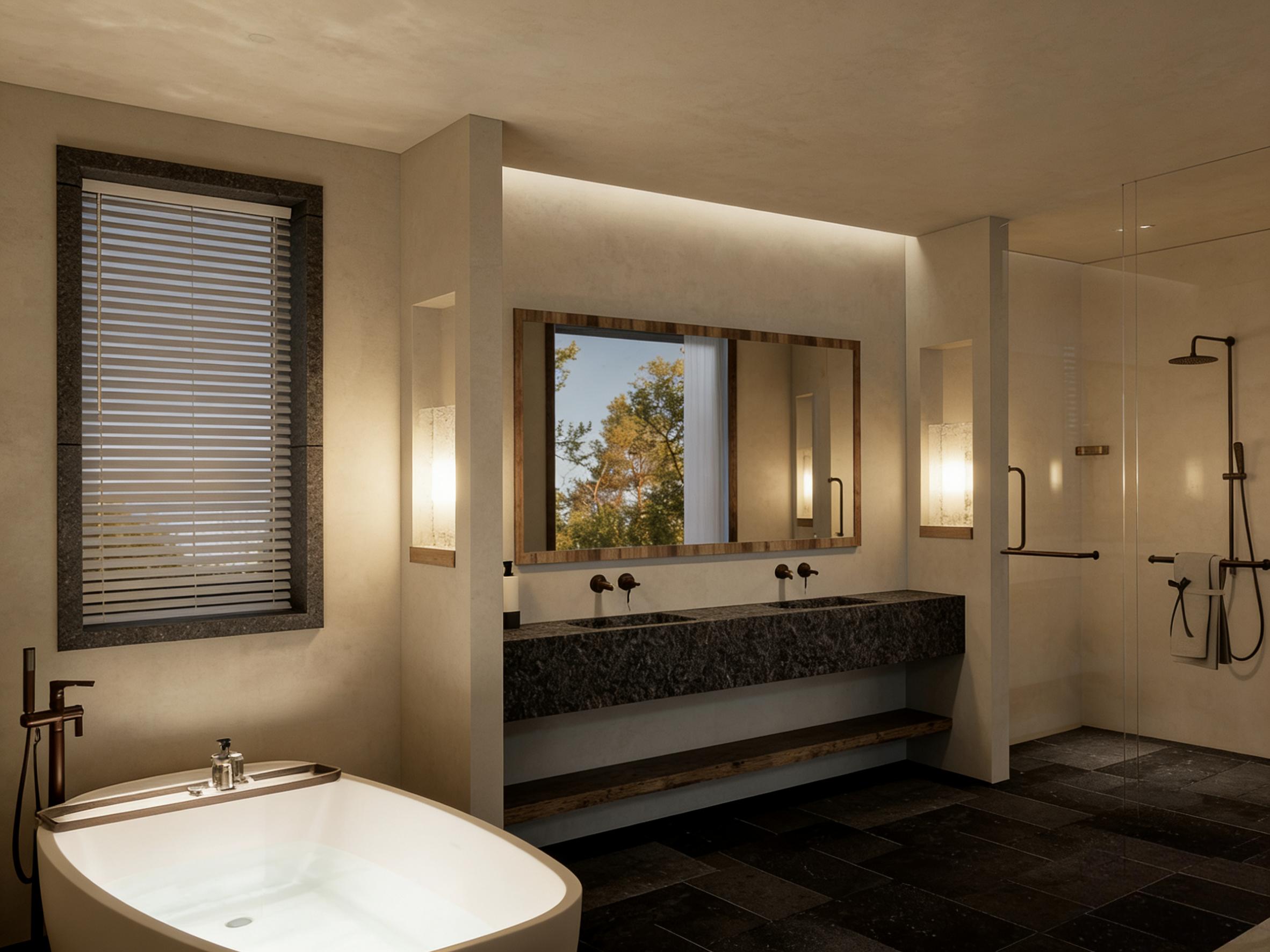 核心家具的选择,严格遵循侘寂风“少即是多”的设计理念。低矮的实木床架线条极简,无多余雕花与装饰,以最朴素的形态呈现木质本真。床品选用米白色、浅灰色等低饱和色系,搭配浅棕色针织盖毯,柔软的质感与温润的木质相互呼应,营造出慵懒、舒适的休憩氛围。床侧的实木床头柜、床尾的原木长凳,均以简约的造型、自然的木纹,延续了空间的侘寂质感,暖黄色的台灯灯光柔和不刺眼,为空间注入温馨的烟火气,让质朴中多了几分生活温度。