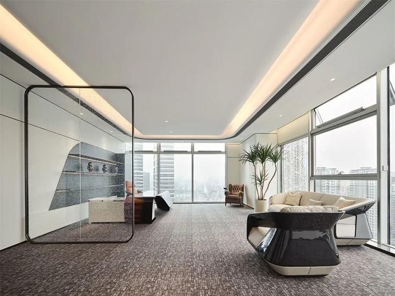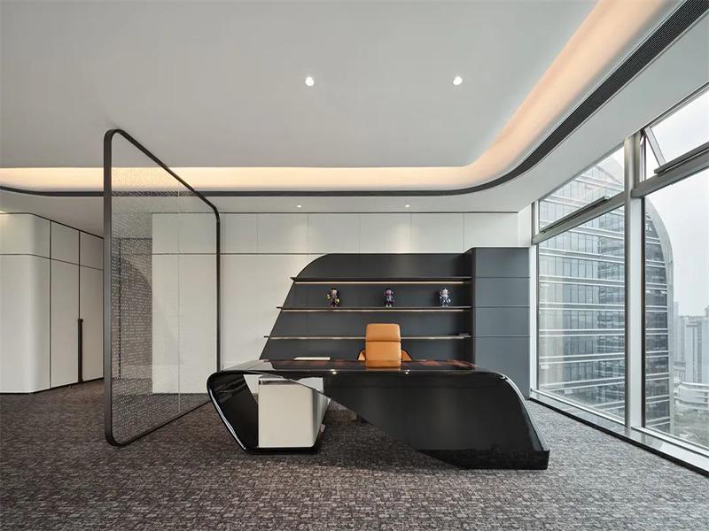 针对金融、科技类企业对专业感的核心诉求,我们以“极简线条+高级质感”为设计基调,公共区域采用深灰色大理石与鱼肚白大理石碰撞出明暗层次,搭配古铜色金属与玻璃材质,既彰显商务格调,又通过无主灯设计巧妙消解石材的冷硬感。总经理办公室选用渐变玻璃隔断,在保障隐私的同时兼顾空间通透,弧形办公桌搭配定制柜体,于细节处传递企业的精致与稳重;而面向创意型企业,我们则会弱化材质的厚重感,增加木饰面与绿植的占比,让办公空间更具温度与活力。