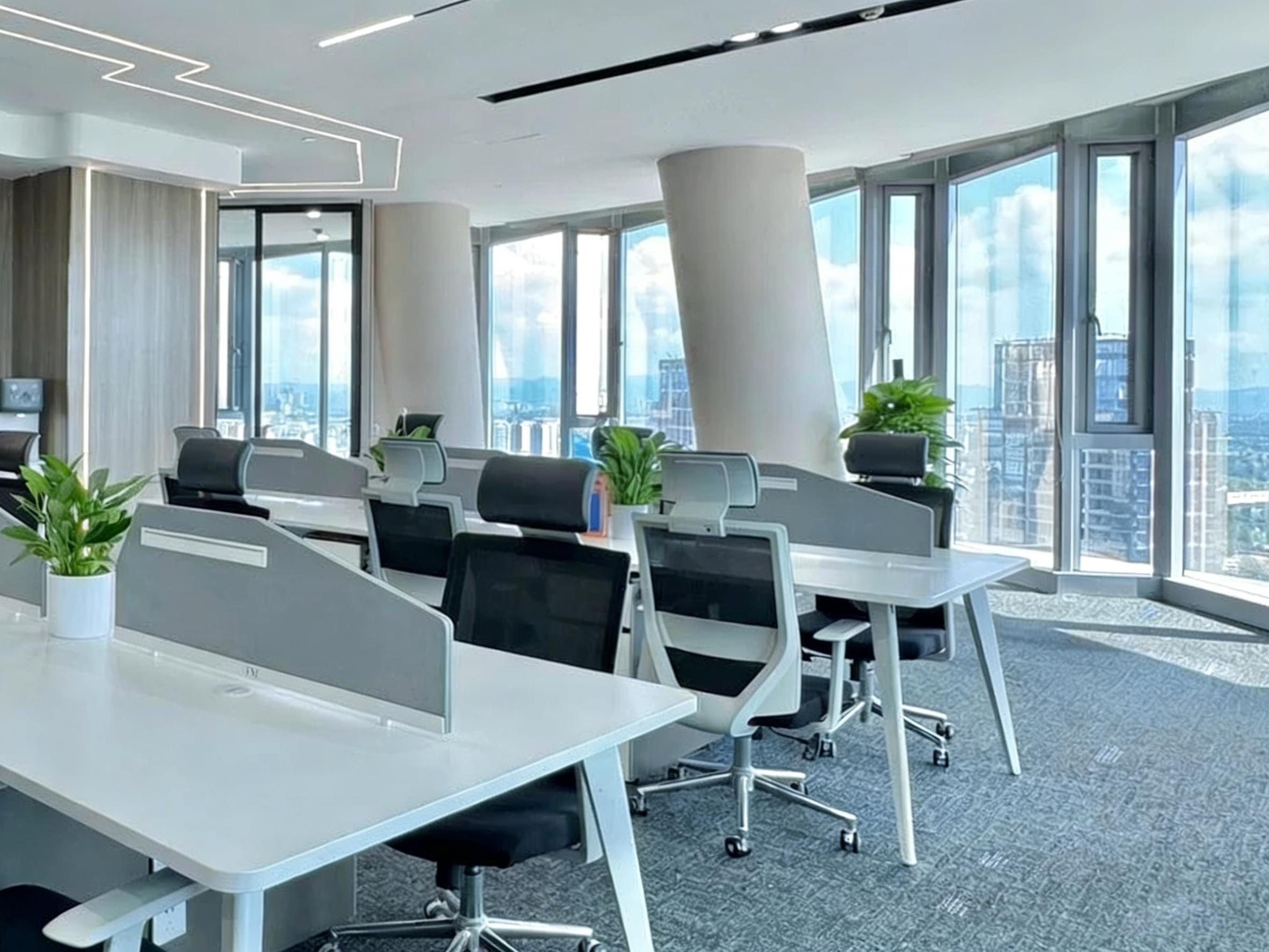 细节设计是本案的点睛之笔,每一处规划都彰显着对办公体验的深度考量。办公区选用人体工学座椅,贴合人体曲线缓解久坐疲劳,提升员工工作舒适度;绿植盆栽巧妙点缀于工位角落与公共区域,为简约空间注入自然生机,平衡办公的严谨与生活的松弛;玻璃隔断的灵活运用,既实现了功能区域的划分,又保障了空间的通透性,让独立办公室与公共区域实现光线互通,提升整体空间的明亮度与空间利用率。