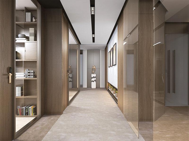 在细节设计上,项目兼顾了功能与美学的双重需求:全空间采用无主灯设计,以筒灯、线性灯、氛围灯打造多层次照明系统,适配不同场景的光线需求;木饰面与金属收边的细节处理,提升了空间的精致度与高级感;玻璃隔断的灵活运用,既保证了空间的通透感,又实现了功能区的清晰划分,最大化提升空间利用率。
