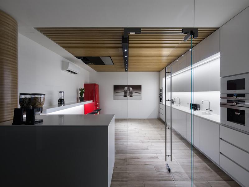 独立高管办公室与会议区则以私密布局打造专业场景,用全景落地窗引入城市景观,搭配简约办公家具,既保障了高管办公、商务洽谈的私密性,又实现了空间的通透感,适配环球中心企业的高端商务需求。员工休闲水吧区作为点睛之笔,以现代简约的橱柜布局打造多元休闲场景,既可以作为员工日常用餐、放松的区域,也能承接小型团队会议与非正式洽谈,为办公空间赋能社交价值。