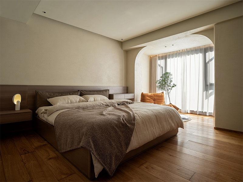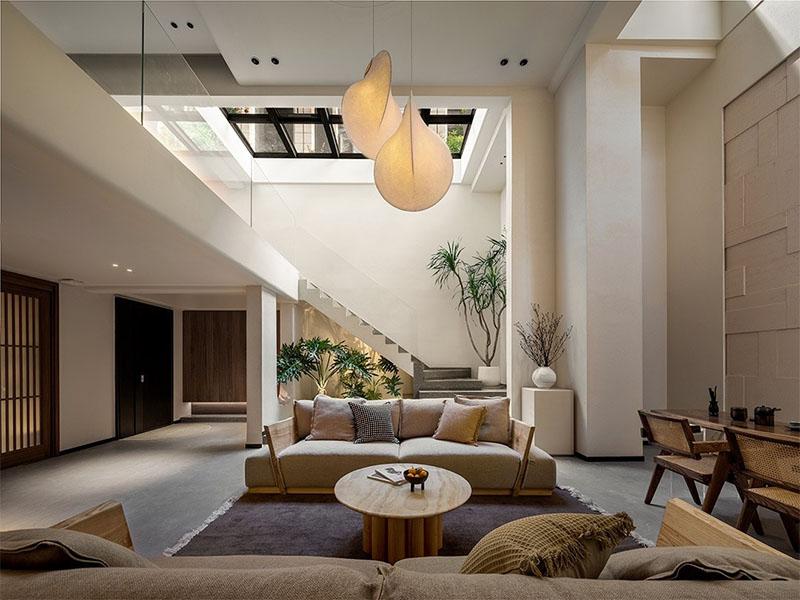 在空间布局上,设计团队践行“去繁就简,动线优先”的公装核心原则,打造“一轴多节点”的开放式动线。公共区域摒弃冗余隔断,以流畅动线串联客厅、餐厅与休闲区,沙发、座椅造型贴合人体工学,既满足住客交流需求,又预留灵活活动空间;垂直空间利用堪称亮点,挑高区域搭配艺术感吊灯,通过光影层次消解空间压抑感,同时增强空间纵深感。客房区域则遵循“功能分区清晰、体验至上”的原则,卧室与休闲区自然衔接,弧形门洞设计弱化空间边界,既保留隐私性,又营造出“家一般”的松弛感,完美契合精品酒店“旅居即归家”的核心诉求。
