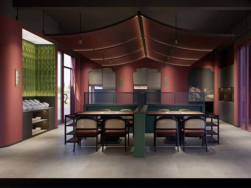 在风格打造上,我们拒绝千篇一律的网红模板,更擅长将在地文化与品牌理念融入设计。比如国风火锅店,我们会用朱红主调搭配竹绿点缀,用仿宋式檐顶、藤编格栅、山水造景等元素,打造 “围炉涮锅,竹影相伴” 的东方意境;同时兼顾实用需求,每桌预留嵌入式火锅位,藤编座椅搭配软包,适配火锅用餐的舒适度需求,让颜值与实用互不妥协。