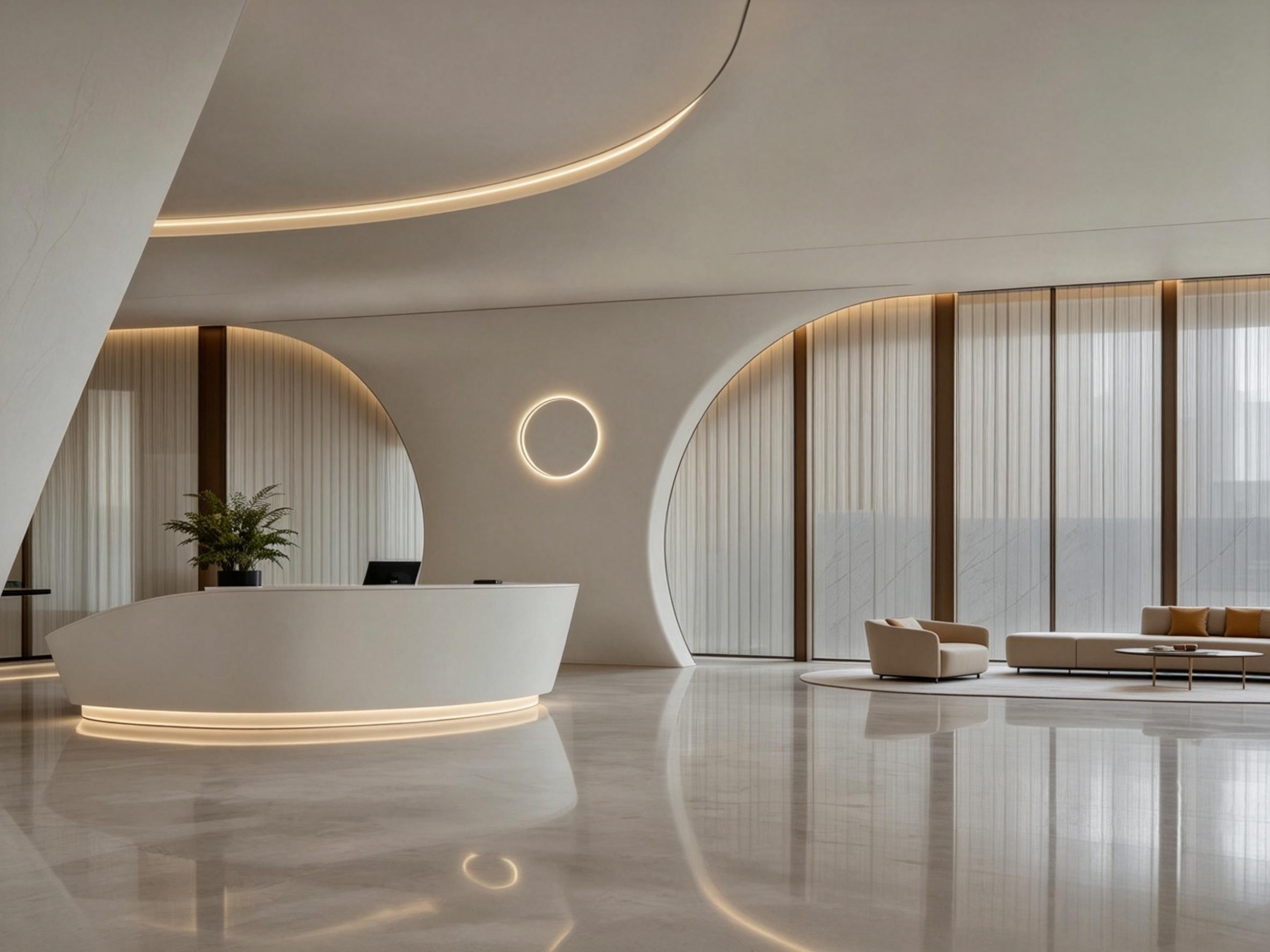 3. 弧形前台&大堂:流动美学,重塑空间气场