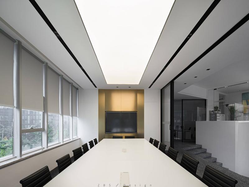 在灯光设计上,我们结合公装空间的多元使用场景,摒弃复杂主灯造型,采用无主灯线性照明系统。天花板上的黑色磁吸轨道灯,以利落线条勾勒空间秩序感,搭配筒灯、灯带的分层设计,精准适配办公、会议、洽谈等不同场景的照明需求,让整个空间在光影交织中,呈现出冷静克制的高级质感,兼顾实用性与美学性,彰显公装设计的细节把控力。