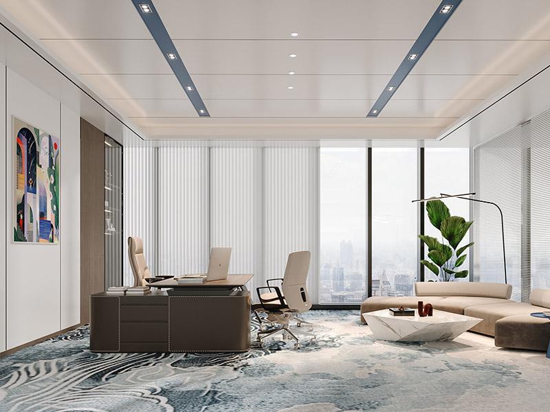 不同于千篇一律的标准化模板,我们的办公设计始终以企业需求为核心。从色彩定调开始,以暖棕、米白等温润中性色为基底,搭配深浅木饰面、皮革与高级蓝调层次,平衡商务空间的严谨与人文温度,让冷硬的办公环境多了一份高级质感与松弛氛围。