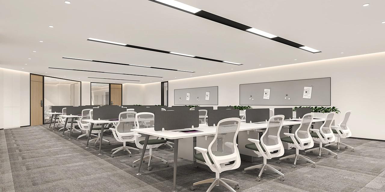 灯光与细节设计上,采用无主灯照明系统,以磁吸灯、筒灯、线性灯组合搭配,光线均匀柔和,色温控制在4000K中性自然光,护眼不眩光,满足长时间办公的照明需求。同时,全屋网络布线、弱电系统、消防设施与空调管道全部隐藏规划,保证顶面整洁美观,符合公装规范与安全标准。软装方面,适量绿植点缀各处空间,软化硬质材质的冷感,净化空气的同时缓解员工视觉疲劳;办公家具均选用人体工学款式,兼顾久坐舒适度与办公实用性,细节处彰显人性化设计理念。