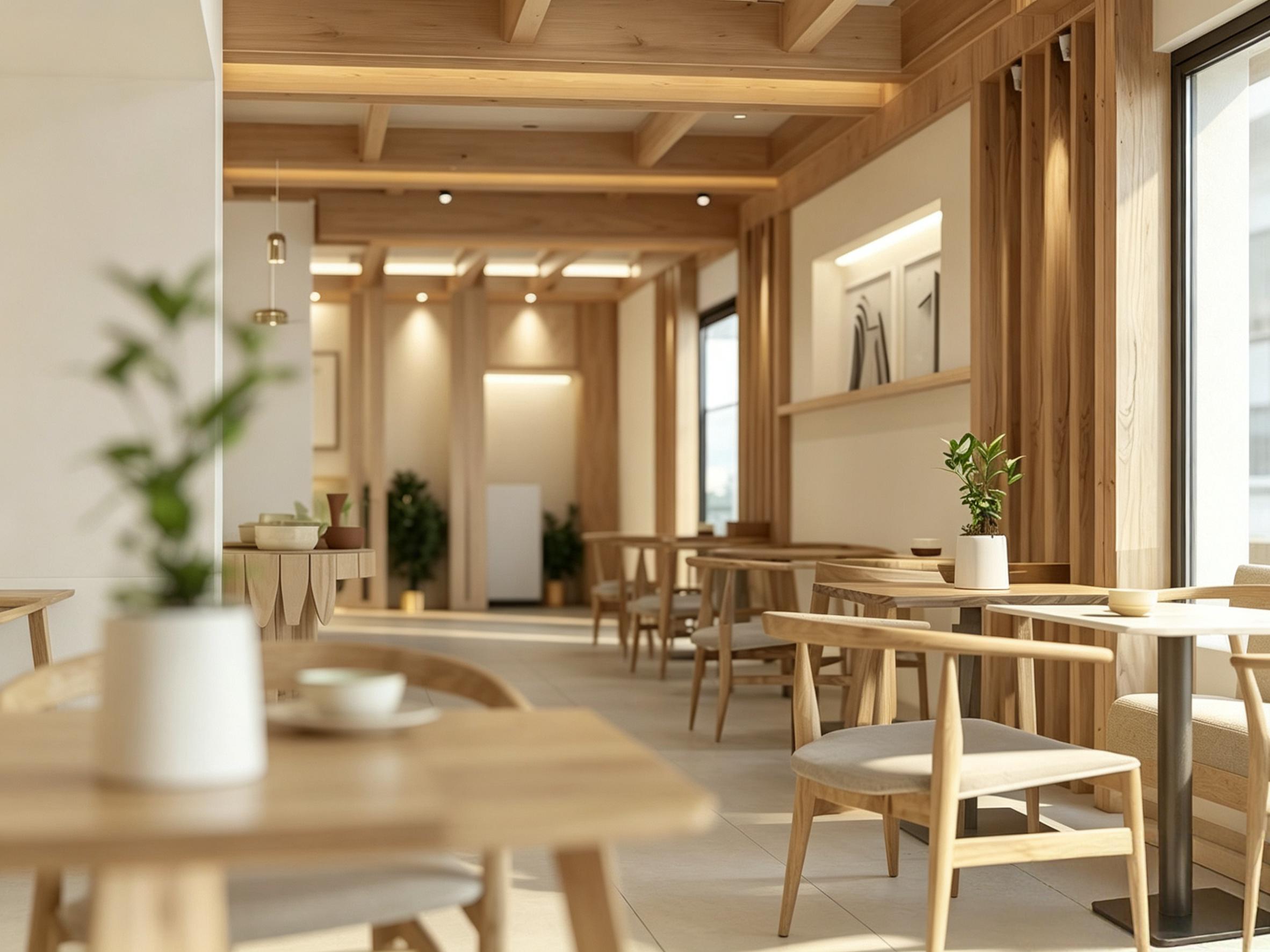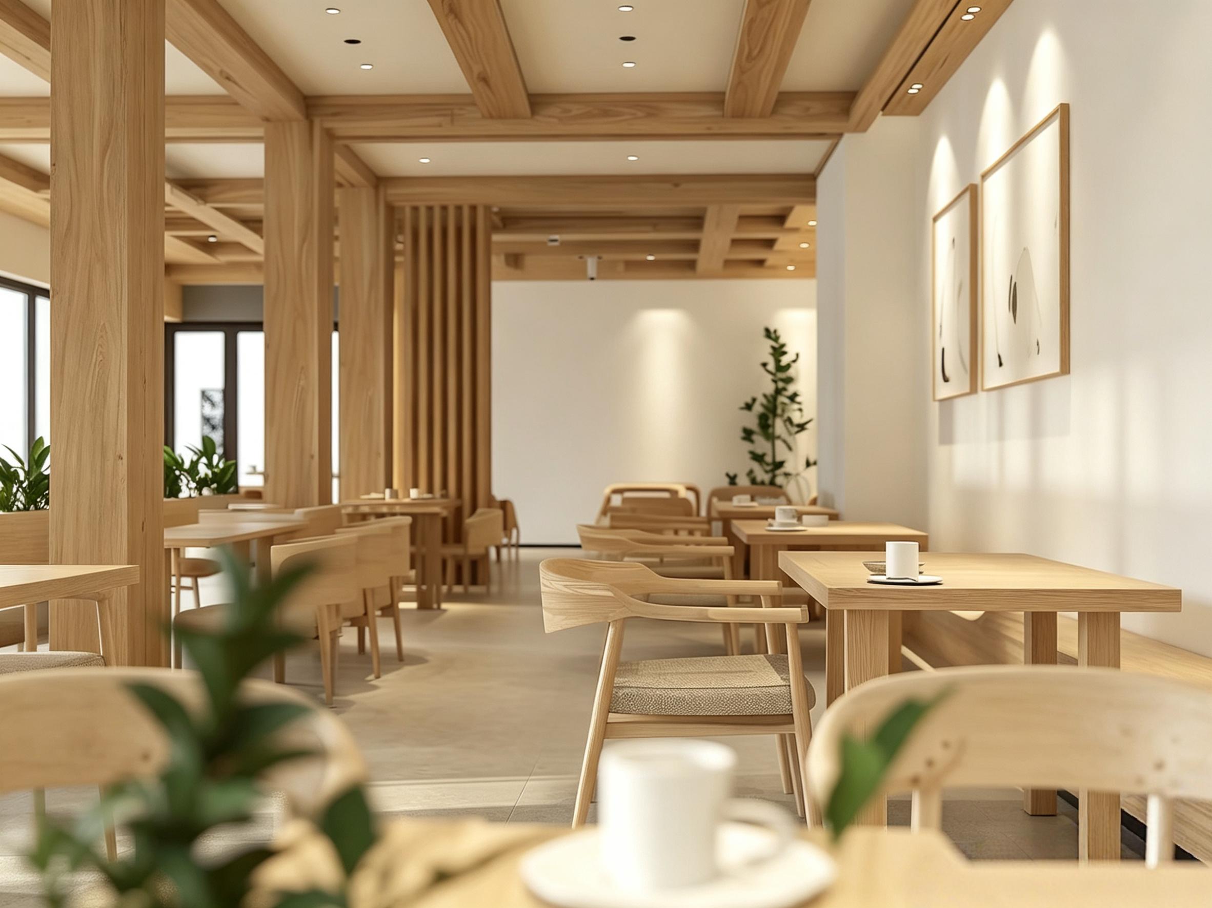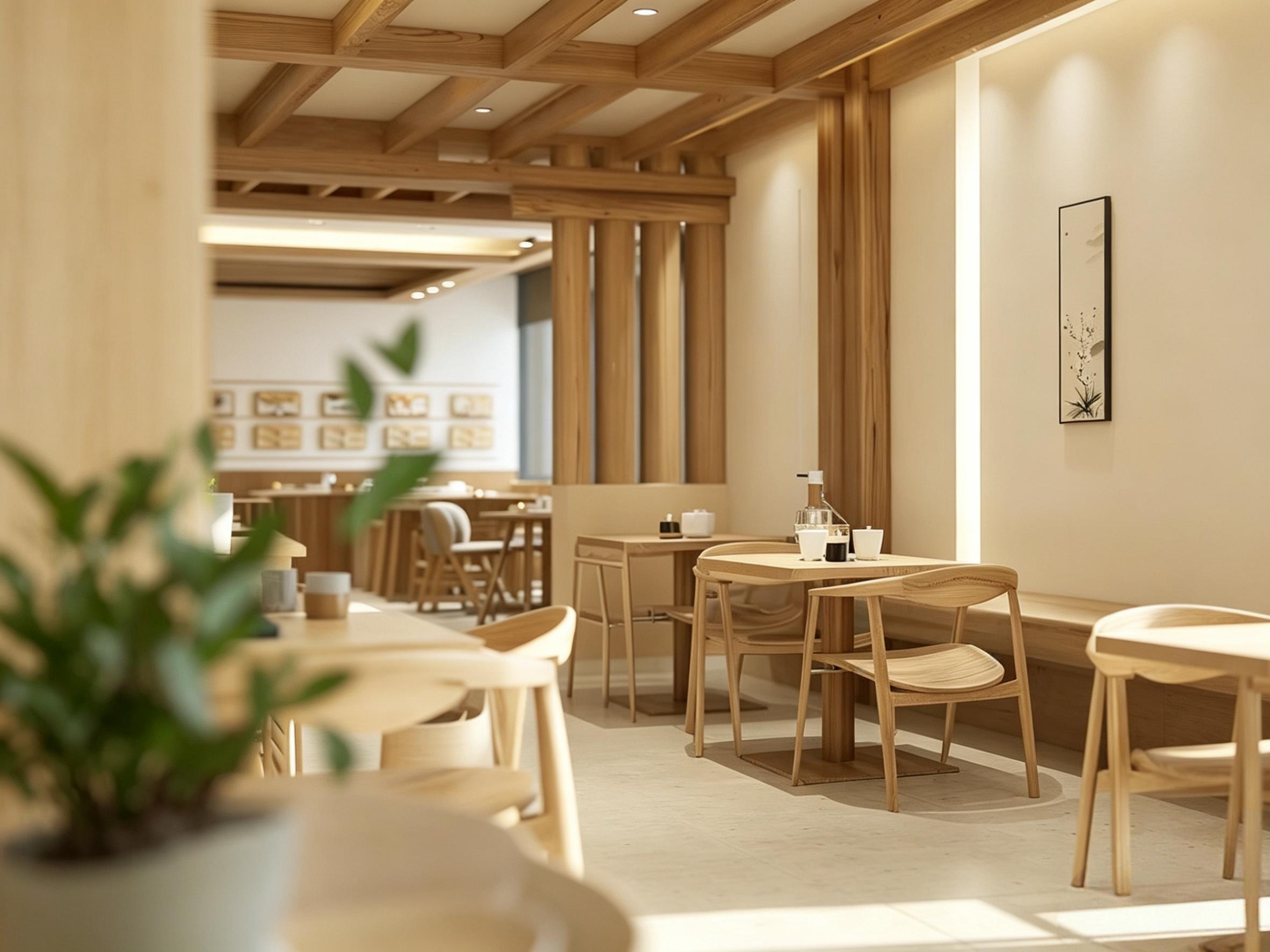 餐饮空间的实用性,始终是设计的核心考量。这套日式原木风餐饮空间,通过合理的动线规划与场景分区,兼顾了不同用餐需求的舒适度与私密性。