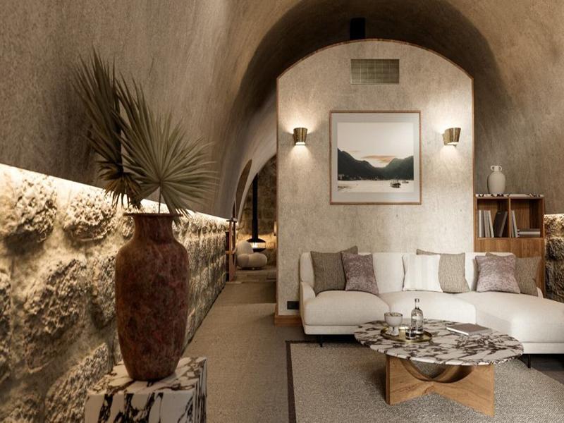 本次民宿整体以温润自然侘寂风为设计核心,依托原生毛石墙面、微水泥顶面、柔和弧形结构打造独特空间气质,同时科学划分公共休闲会客区、餐饮用餐社交区、客房睡眠休憩区三大功能分区,在保留自然温润质感的同时,优化动静动线、灯光氛围与居住功能,解决特色民宿颜值与实用难以兼顾的行业痛点,完全适配青羊区文旅旅居的消费需求。