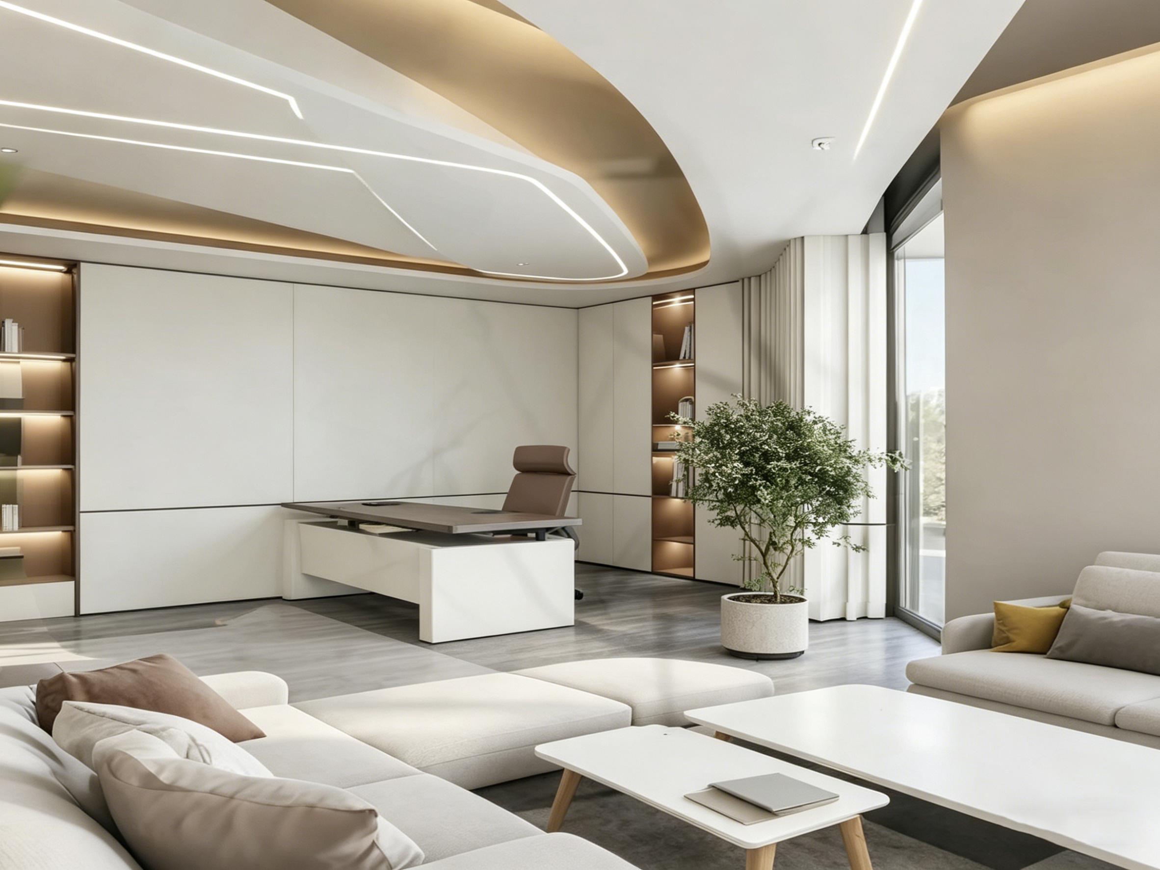 设计过程中,四川壹西格玛建筑工程有限公司摒弃“重造型、轻功能”的设计误区,立足企业办公实际需求,将墙面造型与储物、分区、隔音、展示等实用功能紧密结合。结合成都办公大楼装修的常见需求,墙面整体采用简约大气的线条造型,搭配浅色系环保乳胶漆材质,既营造出通透整洁的办公氛围,又保证了墙面的耐磨易清洁,同时合理控制成都工装设计收费,实现性价比最大化。