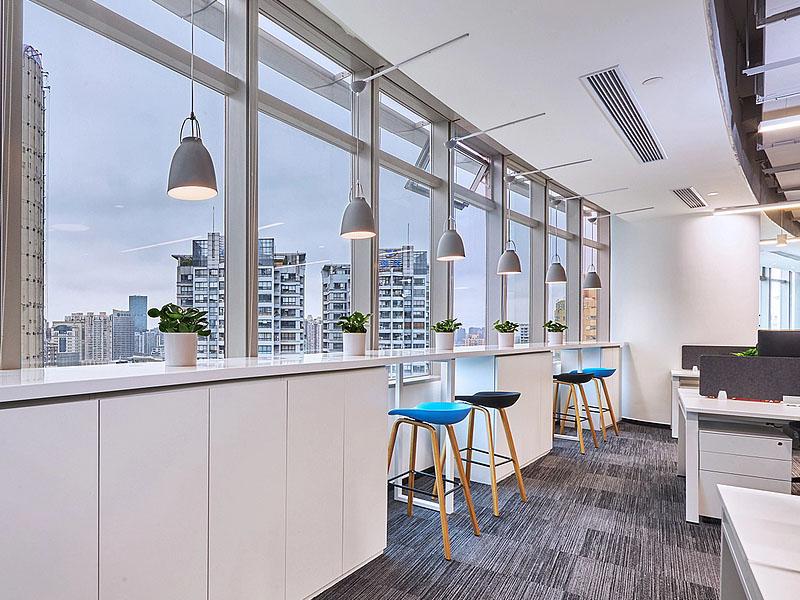 在功能布局上,项目实现了 “高效办公 + 休闲社交” 的双轨并行:标准化工位区保障了日常工作的流畅运转,可灵活扩容的会议空间满足了不同规模的沟通需求,而水吧、高脚吧台等休闲区域则打破了工作与生活的壁垒,让员工在忙碌间隙得以放松充电。裸露的工业风顶面与细腻的墙面材质形成对比,既保留了建筑本身的硬朗质感,又通过软装绿植、暖光灯具的点缀,注入了温暖的人文气息,实现了理性与感性的平衡。
