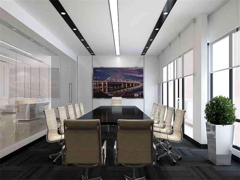 会议室是企业决策与协作的核心场景,我们的设计以简洁大气为基调,通过大面积玻璃隔断引入自然光,搭配规整的长桌与舒适座椅,营造出高效、专业的沟通氛围;深色地毯与浅色墙面的搭配,既平衡了空间色调,又提升了整体质感,满足企业日常会议与商务洽谈的多重需求。