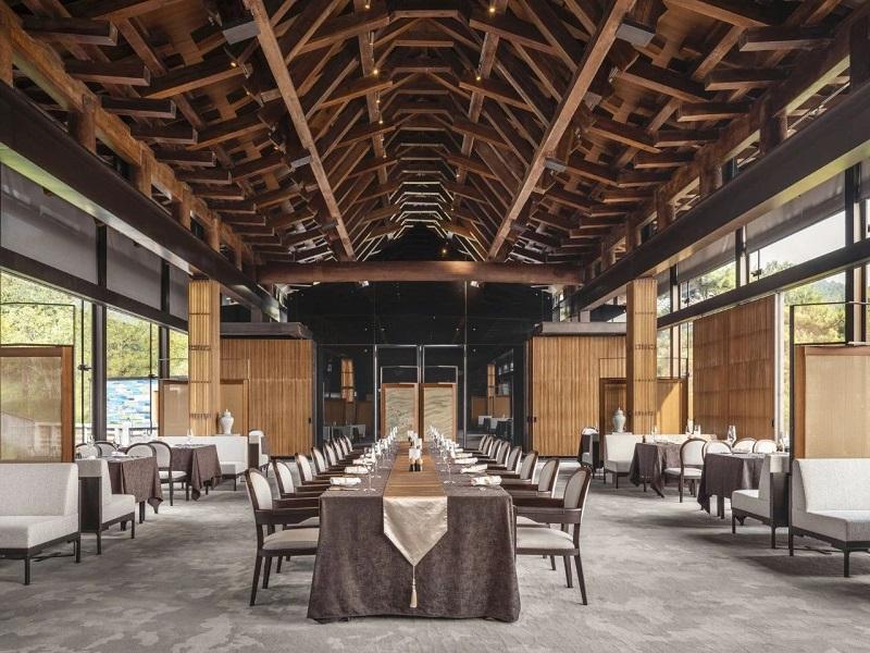 砖石,木,竹,琉璃瓦,明暗,木材、大理石和玻璃材质以黄铜和泥土的自然色调为特色,在天然材料所营造的氛围之中,彰显中国传统顺应自然,让日常与自然相融合的生活情致。