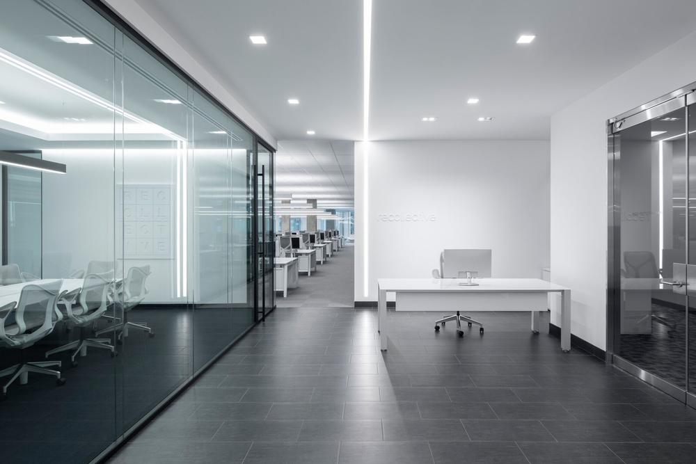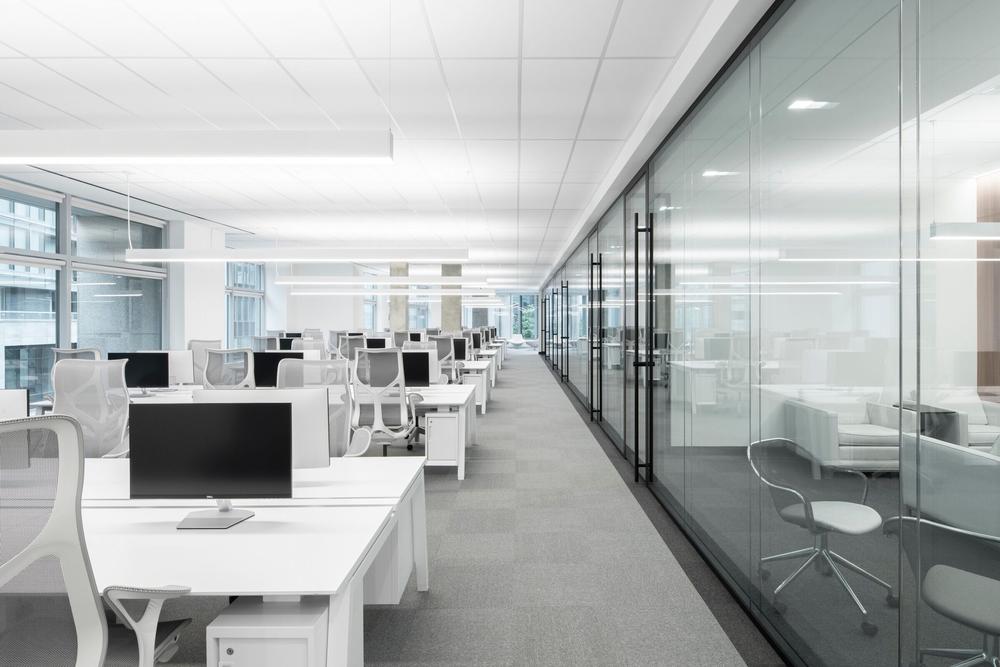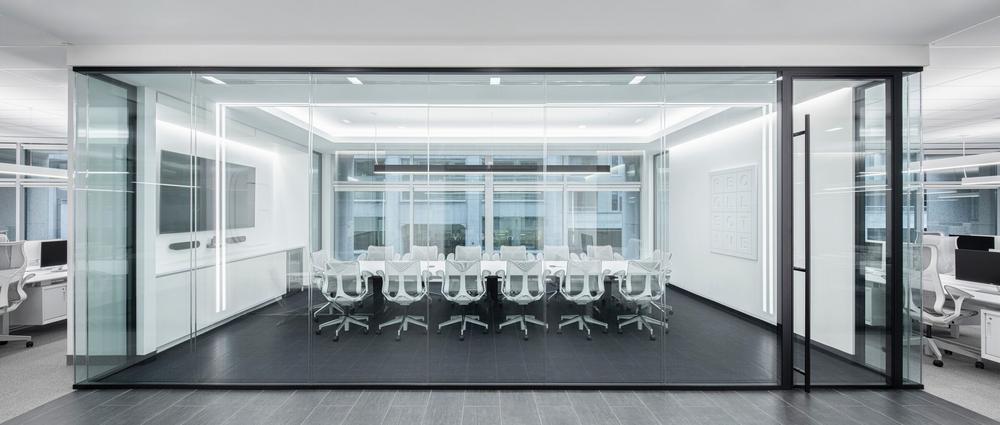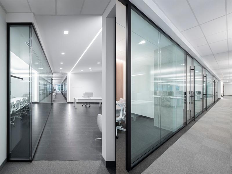 在隔墙的设计上,多数采用了玻璃隔墙。这种设计选择不仅增加了空间的通透感,使整个办公室显得更加宽敞明亮,还能够促进员工之间的交流与协作。玻璃隔墙的清晰视野,让人们在工作时能够随时保持对周围环境的感知,营造出一种开放而积极的工作氛围。同时,玻璃的材质也具有良好的隔音效果,确保了各个工作区域的相对独立性,使员工们能够在安静的环境中专注地完成工作任务。