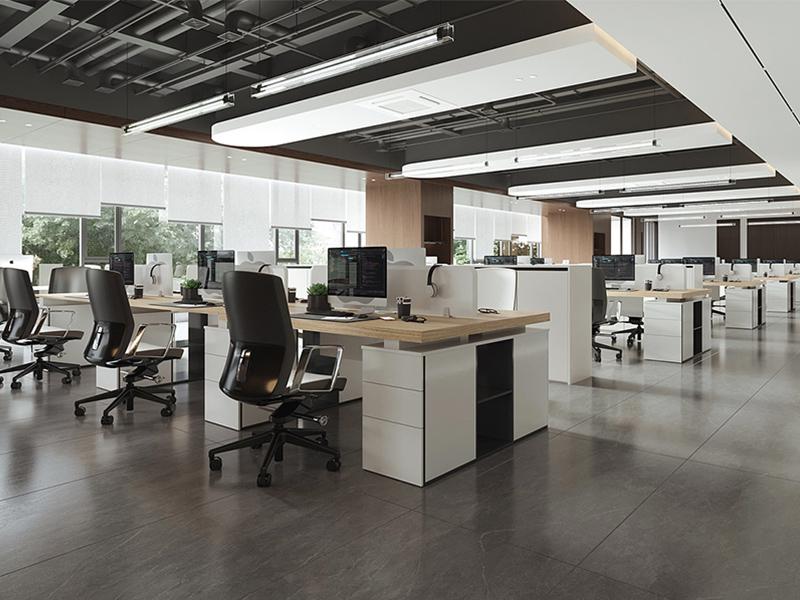 在现代办公室装修设计中,白色调被广泛应用于营造一个整洁而大气的办公环境。这种色彩选择不仅能够提升空间的明亮度,还能给人一种宁静、清爽的感觉。