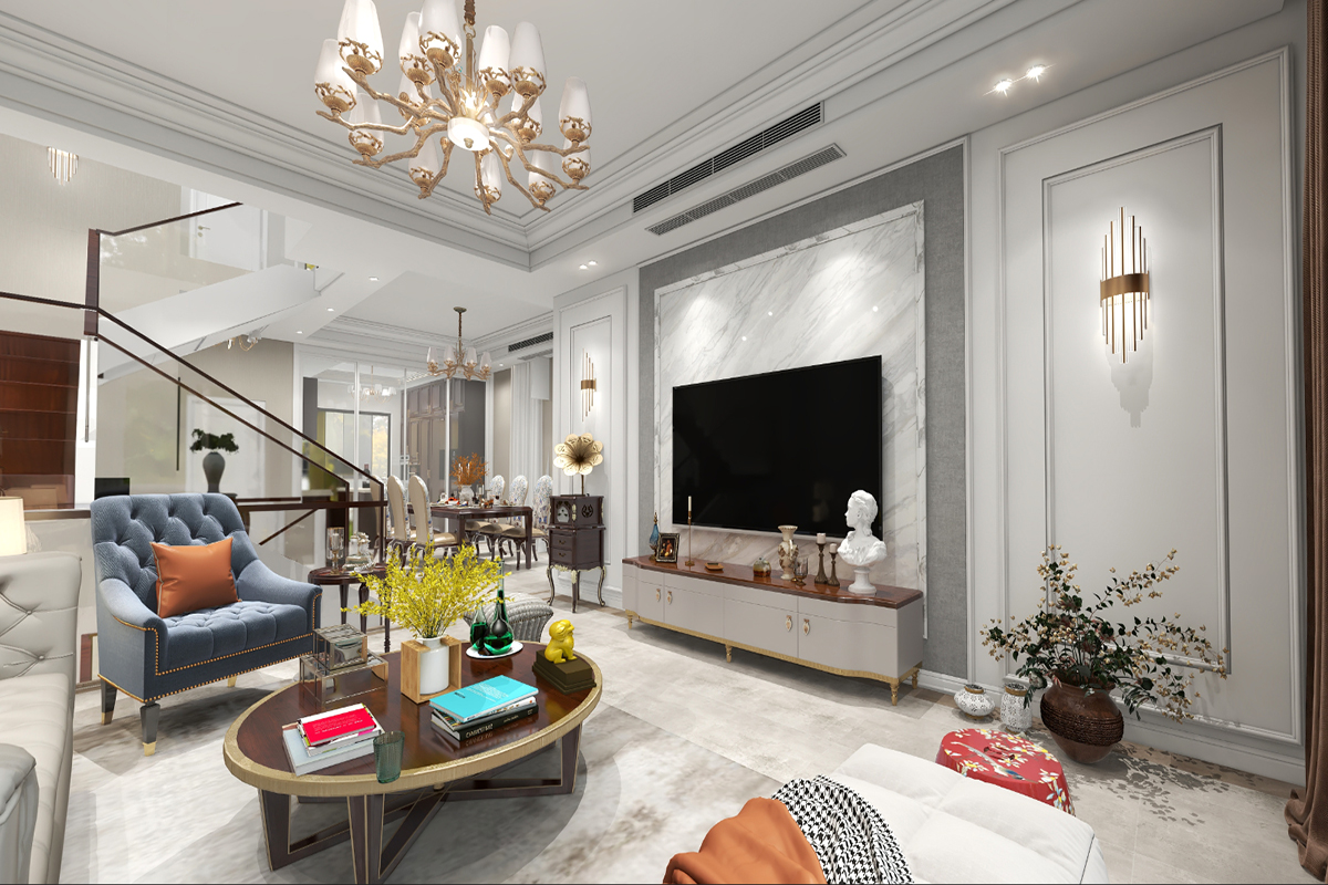 黑白灰的经典配色,是很多人喜欢的调性,在成都金碧天下别墅装修案例中,设计不但延续了黑白灰的经典,也融入了更时尚温馨的元素。