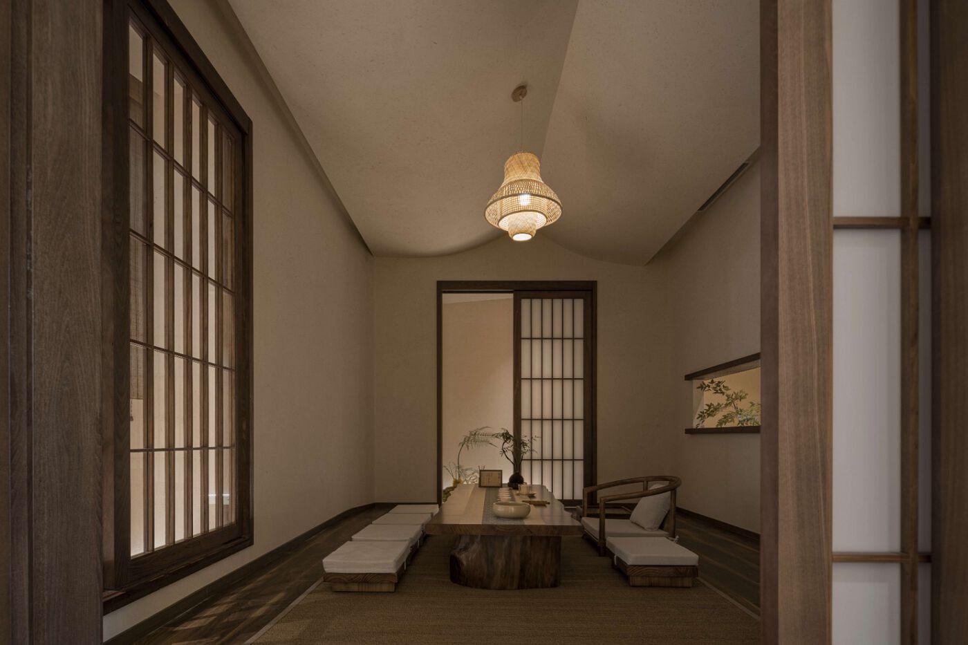 在茶室内部,家具的选择和摆放也体现了侘寂风格的特点。简约的线条,自然的材质,不追求过多的装饰,却给人一种静谧、优雅的感觉。茶桌、茶椅等家具均采用原木材质,保留了木材的原始质感,与整体空间风格相得益彰。