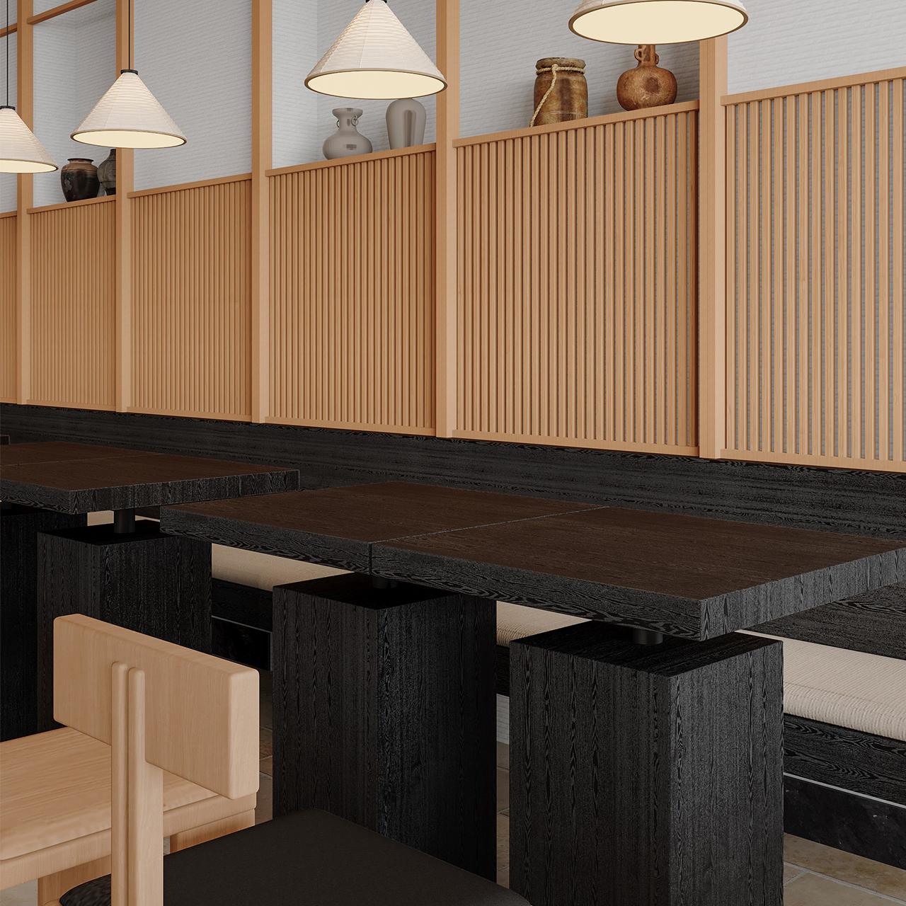 空间内,木色桌椅错落有致,长桌配高脚凳适合快节奏的用餐需求,矮桌配普通座椅则为顾客提供了更为放松的就餐环境。地面浅米色石砖与深灰色石材的搭配,巧妙地划分出不同功能区域,丰富的层次感让整个空间更具格调。无论是柜台区域用于制作和展示美食,还是用餐区那一排排整齐的桌椅,都在无声诉说着这家店的品质与用心。这家店在成都餐饮装修公司的雕琢下,成为了一个舒适又极具特色的用餐之所。