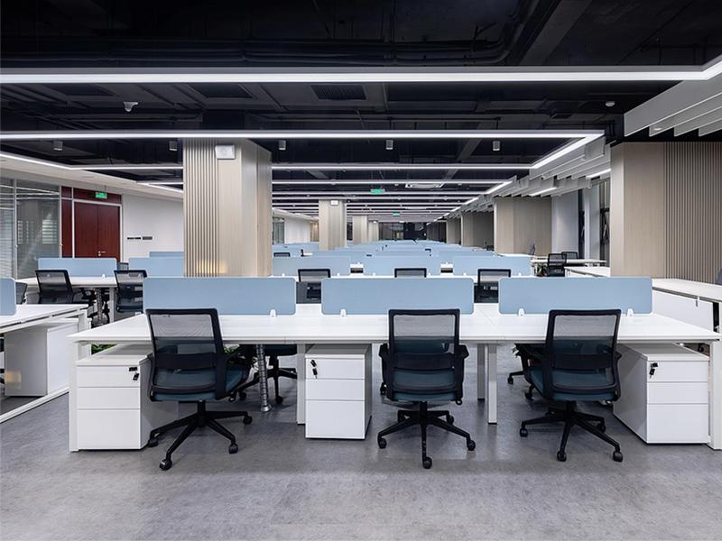从会议室到办公室,四川壹西格玛工装公司对不同功能区域有着精准把握。会议室摒弃传统的单调布局,采用长方形会议桌搭配带滚轮办公椅的形式,方便参会人员自由移动与交流,极大地促进团队讨论的互动性;长桌排座式则适用于项目汇报、商务洽谈等正式场景,整齐有序且配备高清显示屏,满足资料展示需求。在办公室设计上,独立高管办公室兼具办公与接待功能,合理划分工作区与接待区,办公桌、展示架、沙发等布置精巧,既彰显高管身份,又能为访客提供舒适空间。开放式办公区更是巧妙利用绿植隔断,多人共用办公长桌,保证采光的同时,营造出轻松协作的氛围,让员工在舒适环境中激发创意与工作热情。