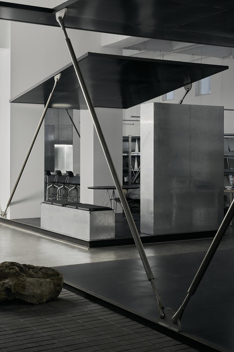 在风格特点上,色彩运用独具匠心。以黑白灰为主色调,黑色的会议桌沉稳大气,白色墙面提亮空间,灰色地面丰富层次感,整体呈现出简洁而有质感的视觉效果。材质选择上,金属、木材、混凝土相互搭配,金属打造的置物架与墙面彰显工业风粗犷,木地板带来自然气息,混凝土则呈现原始质感,融入极简理念。布局采用开放式工位,增强空间通透感与互动性,同时设置独立分区的会议室,保障功能独立性。灯具造型简约,长条吊灯、吸顶灯等不仅提供照明,更是空间装饰亮点,强化极简风格。
