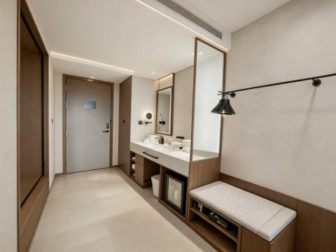 5. 收纳隐形化:衣柜、迷你吧、行李架尽量嵌入式设计,保持空间整洁,减少视觉杂乱。