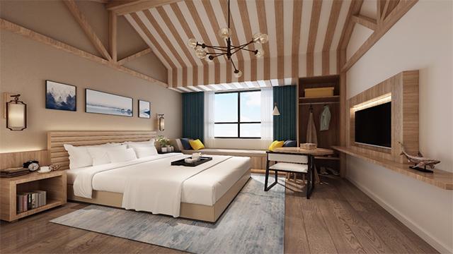 第四,基础客房的舒适与收纳逻辑。客房是酒店体验的核心,设计的关键是“以客群需求为核心”。经济型客房更注重收纳与实用性:嵌入式衣柜、隐藏式置物区,最大化利用空间;浅色木饰面搭配柔和灯光,打造温馨放松的休憩环境,同时通过隔音材料的使用,保障客人的睡眠体验,让基础房型也能拥有高舒适度。