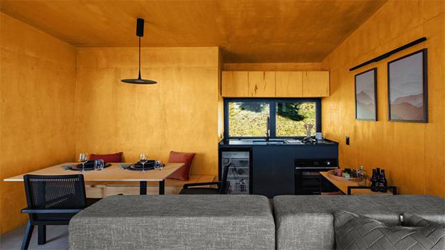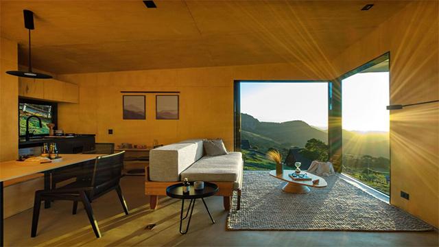 借景的核心,是打破室内外的边界感,让空间与自然产生对话。这组山地度假民宿的设计,就把这一点做到了极致。建筑采用悬挑式结构,大面积的落地玻璃与无框转角窗,将连绵的山景、澄澈的天光直接框入室内。在客房中,床榻正对全景玻璃窗,清晨的第一缕阳光会随着山势的轮廓洒进房间,黄昏的落日则会把墙面染成暖金色。这种设计并非简单的开大窗,而是公装设计中对空间轴线、观景视角的精准把控——公装团队在前期规划时,就会根据建筑的朝向、周边景观的层次,确定窗户的位置、大小与开启方式,让住客在室内的核心活动区,都能拥有无遮挡的观景视野。