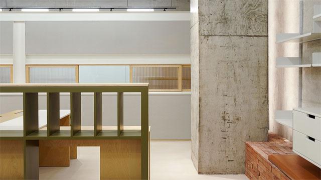 同时,我们在开放式工位的边缘区域,设置了可移动的橄榄绿色半开放隔断,员工可以根据需求调整位置,打造临时的半封闭专注空间;靠窗的红砖长椅则作为 “情绪缓冲带”,员工可以在工作间隙短暂休息,避免长时间久坐带来的身体疲劳。这些看似微小的细节,从功能上减少了员工的额外消耗,让他们能更专注于工作本身。