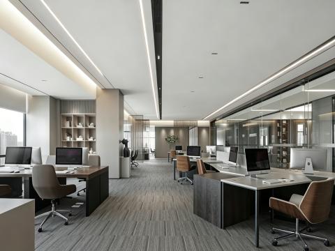 合理规划员工通行、客户接待动线,避免动线交叉拥挤,保证各区域通行顺畅。充分利用自然采光,搭配合适的人工照明,提升办公空间明亮度,减少员工视觉疲劳,提高办公效率。