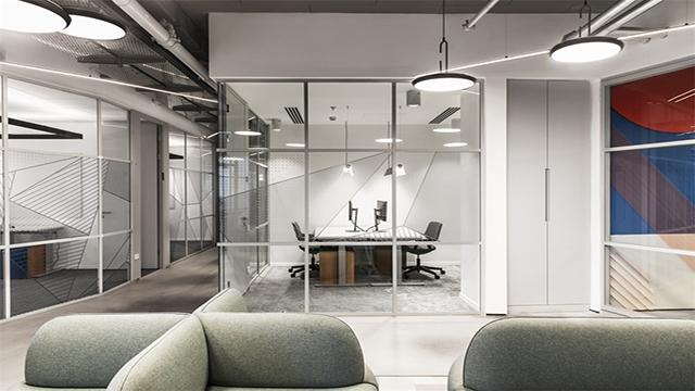 开放式休闲区虽能促进团队交流,但噪音易扩散影响专注办公。我们在设计中采用半高隔音玻璃隔断划分独立办公间,搭配声学吊顶与吸音软包,既保留开放空间的通透感,又降低噪音干扰,保障员工办公专注度。