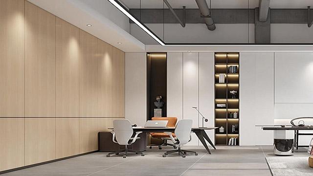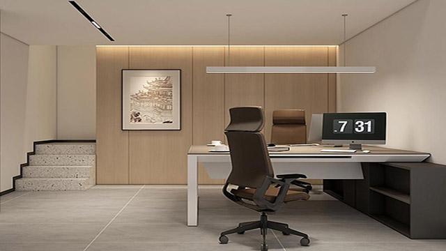 其次,利用材质碰撞打造层次丰富的空间质感。工业风的水泥梁顶、裸露管道,搭配温润的木饰面与轻盈的玻璃隔断,是当下成都写字楼装修中很受欢迎的组合。这种设计既保留了工装的利落感,又通过材质的冷暖对比,避免了空间的沉闷。比如在高管办公室用浅木色墙面搭配线性灯带,在开放办公区用金属框架的玻璃隔断替代实墙,既保证了空间的通透感,又能通过光影变化,让静态的空间变得灵动起来。