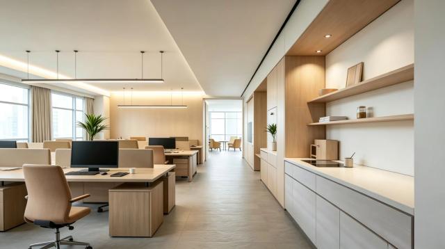 采光与通风的优化,从来不是单一改造,而是结合空间功能的系统性规划。在成都厂房办公室装修中,我们会根据办公区、会议区、接待区的不同需求,定制差异化的解决方案,比如在开放办公区采用大面积玻璃隔断与顶装线性灯结合,在独立办公室搭配百叶窗实现光线调节,让每一处空间都兼顾明亮、通透与实用。