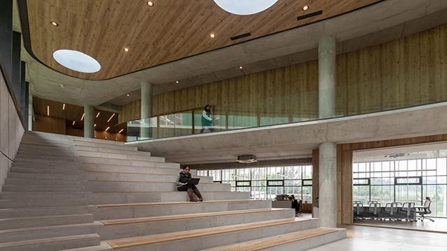以原生肌理,重塑厂房的空间灵魂厂房改造的魅力,在于它自带的开阔骨架与原始力量感。我们保留了建筑清水混凝土的肌理,让水泥柱、天花与台阶成为空间的底色,搭配温润的原木饰面,刚与柔的碰撞,让工业风多了一份自然的温度。挑高的中庭设计,让上下两层空间被玻璃栏杆柔和地串联起来,自然光透过圆形天窗倾泻而下,在木纹地面上投下斑驳的光影,让原本空旷的厂房变得通透又富有呼吸感。