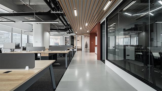 与之相反,另一些成都办公室则走向 “强光误区”:大面积落地窗未搭配遮阳设施,成都夏季正午阳光强烈,直射桌面导致电脑屏幕反光严重,员工不得不频繁调整屏幕角度或拉上厚重窗帘,反而让空间重回昏暗。更不合理的是,部分企业在成都办公室装修设计中,为追求 “现代感” 采用镜面不锈钢或高反光地砖,光线在空间内多次反射形成 “光污染”,长期暴露会增加近视与青光眼的风险。