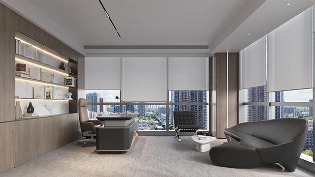 想要隔断不挡光,核心是放弃全实心墙体,选用高透光或半透光材料,这是成都办公室装修设计中最基础也最有效的原则。全景钢化玻璃隔断单层或双层钢化玻璃是主流选择,透光率可达 90% 左右,能让窗外自然光穿透到办公室深处,彻底消除封闭暗区。极窄铝合金边框设计,弱化视觉遮挡,让空间更简洁大气,适合开放办公区与走廊、普通办公室之间的分隔,安全环保、易清洁,性价比极高。双玻内置百叶隔断这是成都办公室装修设计中兼顾采光与隐私的最优解之一。双层中空玻璃保证隔音效果,中间隐藏百叶帘,需要隐私时拉下叶片,需要采光时完全收起,光线毫无阻碍。会议室、财务室、高管办公室用这款隔断,既能保持空间通透,又能满足私密需求,灵活适配多种办公场景。