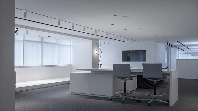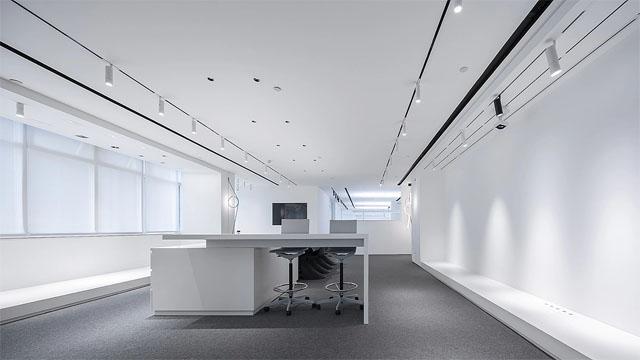 白灰墙面也是灯光设计的理想载体,能够完美反射光线,凸显线性轨道灯、嵌入式筒灯等现代照明方案的层次与质感。无论是无主灯的整体氛围营造,还是局部重点照明,都能最大化灯光效果,既避免空间压抑感,又通过光影变化塑造空间深度,提升整体办公环境的品质感。