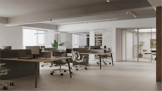 不少企业装修时偏爱复杂造型,比如繁复的吊顶雕花、花哨的背景墙图案,或是过度堆砌网红元素,这种设计初期看着热闹,却极易审美疲劳,1-2 年后就会显得陈旧老气,与企业发展的新调性脱节,而且繁杂装饰会压缩空间视觉层次,让本就不大的办公室显得压抑拥挤,完全不符合现代办公 “简洁高效” 的核心需求。材质是办公室质感的核心基础,却常被忽视,比如用劣质乳胶漆易发黄起皮,廉价木地板易变形起翘,哑光度差的瓷砖会让空间显得暗沉,而金属、玻璃、实木等优质材质的缺失,会让办公室整体呈现出 “廉价感”,尤其在接待区、总裁办公室等关键区域,材质的档次直接决定客户的第一印象,劣质材质不仅拉低企业格调,还会增加后期维修成本。