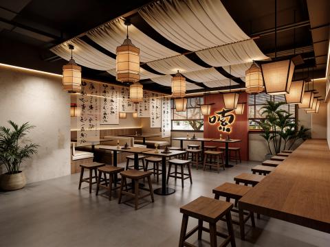 - 场景适配:打造多元用餐场景,如本案中右侧的长条吧台,适配单人简餐、快速出餐,提升翻台率;卡座区满足多人聚餐需求,提升客单价;散座区适配灵活客流,最大化空间利用率;