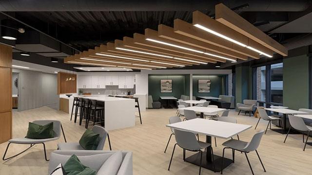 材料细节上,浅木色饰面统一空间自然基调,与浅灰软装形成冷暖平衡,地毯与吸音吊顶有效降噪,提升办公静谧性。在成都办公装修中,模块化光影与功能化布局的结合,既赋予空间高级视觉效果,又贴合企业运营与员工需求,为成都办公空间升级提供了优质范本。