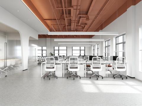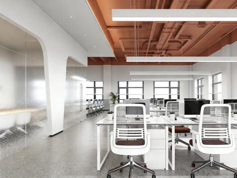 2. 照明系统分层设计:裸顶空间如果只用基础照明,会出现光线不均、眩光等问题。必须搭配长条形吊灯、嵌入式筒灯、局部氛围灯,形成多层次照明系统,满足不同办公场景的光线需求,保护员工视力。