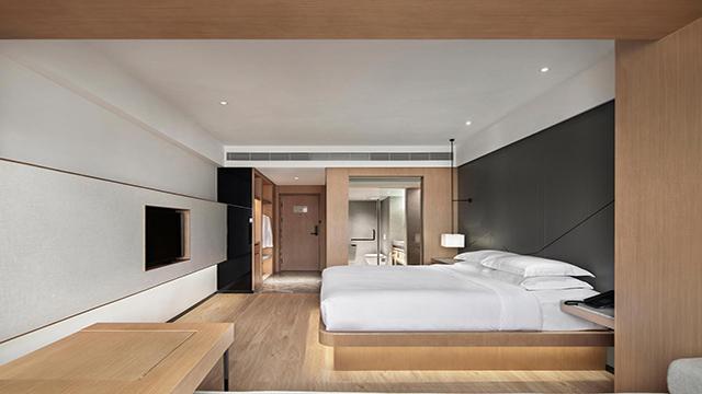 第二个常见坑,是忽略酒店的运营实用性。很多业主只追求视觉效果,却忘了酒店是高频使用的商业空间。比如卫浴空间不用耐脏易清洁的水磨石、大理石,反而用难打理的材质;走廊不做降噪地毯,住客走路噪音大影响休息;客房不做充足的收纳,后期运营杂物无处安放。专业的酒店装修装饰设计,一定是 “美观与实用并行”,我们在做设计时,会优先考虑酒店的运营需求,比如干湿分离的卫浴布局、易清洁的地面材质、充足的壁龛收纳,让酒店后期运营更省心。