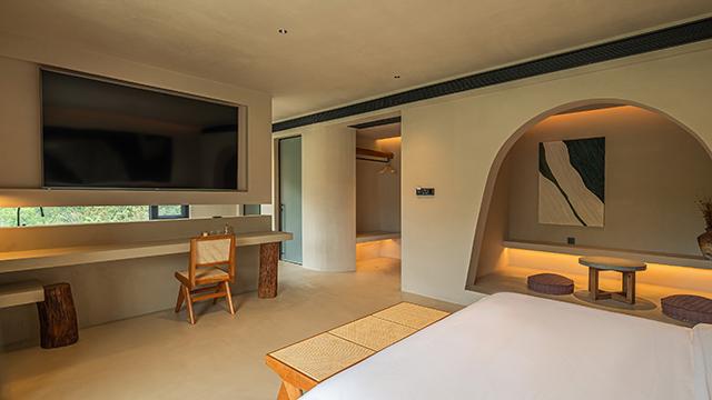 四川酒店装修设计不同于普通家装,民宿类项目更注重“美学与运营的双重适配”,侘寂风的落地核心的是材质与细节的把控。我们在项目中全程贯穿微水泥、原木、藤编等自然材质,既呼应四川山野的自然肌理,又契合侘寂风“不完美即完美”的设计哲学,这也是当前四川酒店装修设计的主流趋势。