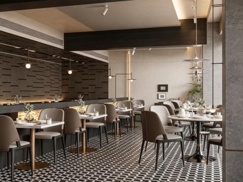 - 主色调:以暖米色、浅咖色、奶白色等暖调中性色为基底,打造温润、通透的空间氛围,弱化高端感的疏离感,让食客感受到松弛与舒适;