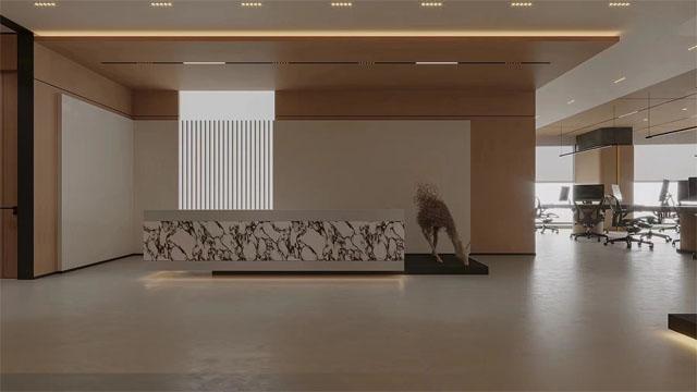 遵循 “办公区主照明、休闲区氛围光” 的原则,在开放式办公区,以线性灯作为主照明,搭配水波纹吊顶的漫反射,打造均匀柔和的办公光环境,满足长时间办公的视觉需求;在走廊、前台等过渡区域,用线性灯勾勒空间轮廓,结合水波纹的光影变化,营造沉浸式的空间体验,实现功能与美学的统一。