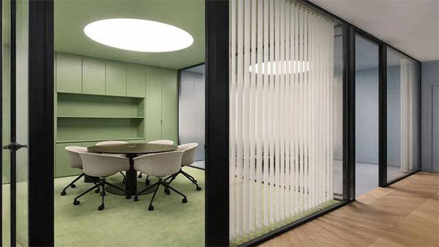 很多公装设计会陷入“越亮越高效”的误区,一味使用高饱和色彩,反而容易造成视觉疲劳。而人性化的办公室设计,会根据不同功能区的需求,定制色彩方案。比如会议室采用柔和的薄荷绿,既能缓解会议中的紧张感,又能保持空间的专注度;开放休闲区搭配暖白色与浅木色,弱化工作场景的严肃感,让员工在休息时能快速放松。这种分区色彩逻辑,正是成都办公室设计的巧思——既用色彩强化空间功能属性,又避免了单调或刺眼的色彩对员工情绪的干扰,是公装装修中低成本提升体验感的关键技巧。