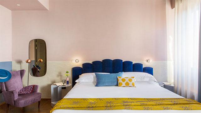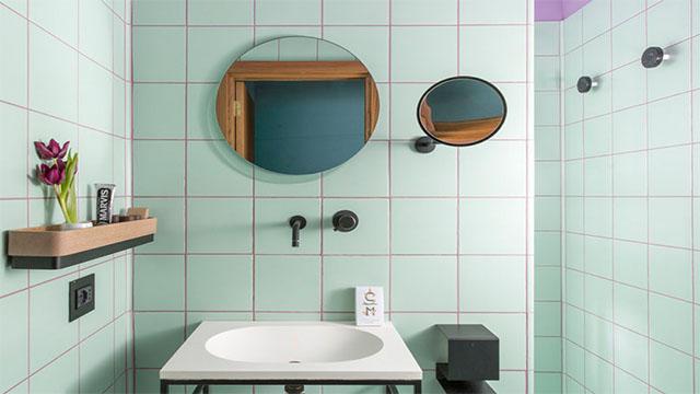 低饱和撞色的核心,在于“克制中的张力”。不同于高饱和色彩的视觉冲击,也区别于单一色调的平淡单调,低饱和撞色是将莫兰迪粉、薄荷绿、雾霾蓝等柔和底色,与暖棕、姜黄、橘橙等低饱和辅色进行和谐搭配。这种设计在成都酒店客房中应用尤为广泛:浅薄荷绿的卫浴墙砖搭配粉色美缝,既弱化了空间冷硬感,又通过色彩层次提升了卫浴区的精致度;客房墙面以莫兰迪粉为基底,搭配宝蓝色床头、姜黄色床品,柔和色彩碰撞中,既保证了视觉舒适度,又让空间摆脱了单调,尽显高级质感。