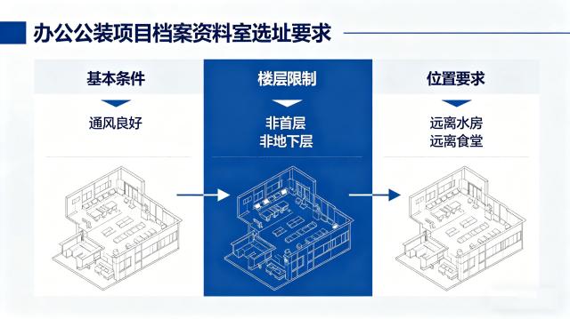 在办公公装项目中,档案资料室作为存放企业核心文件、重要档案的关键区域,其防潮防火设计直接关系到档案资料的完整性与安全性,更是成都写字楼装修、成都工装公司在项目实施中需重点把控的核心环节。档案资料多为纸质、电子载体,易受潮湿、火灾影响出现霉变、损毁,因此,科学合理的防潮防火设计,既是办公公装品质的体现,也是企业档案管理工作的重要保障。